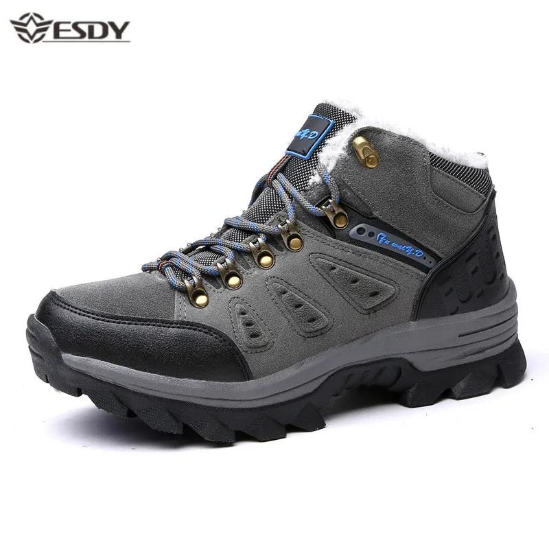 Winter Fur Warm Snow Boots for Men Lace-up Casual Winter Boots Work Shoes Men Footwear Fashion Rubber Ankle Shoes Big Size 37-47