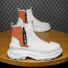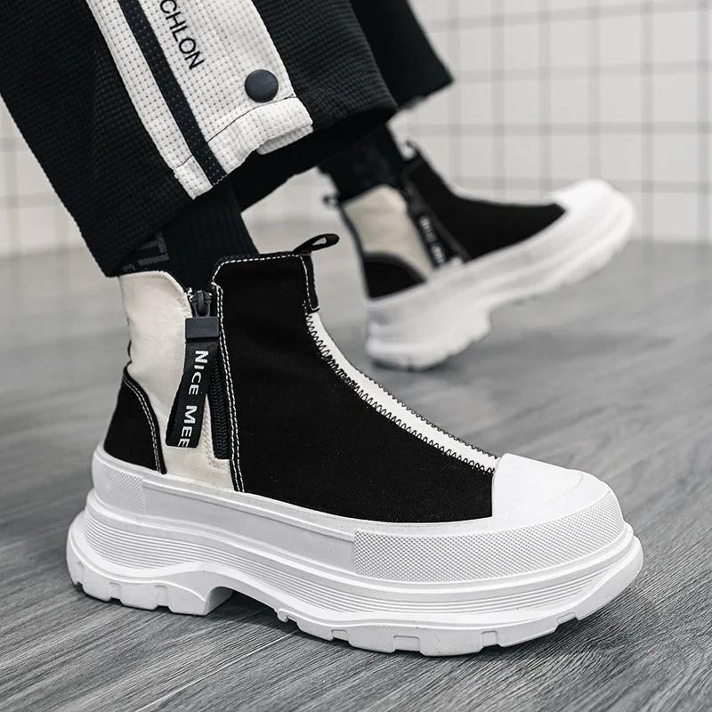 Autumn Men Casual Sneakers Canvas Chunky Platform Ankle Boots High-cut Zip Patchwork Sneakers Male Breathable Sport Shoes 38-44
