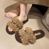 Versatile Flat-bottomed Mao Mao Slippers Women's Outer Wear 2025 Autumn New Korean Version Mao Mao Drag Women's Shoes Plush Black Fashion