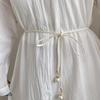 Elegant Braided Leather Pearl Belts For Women Lady Long Hemp Rope Thin Knot Waist Belt Bohemia Summer Tour Decor Waistband
