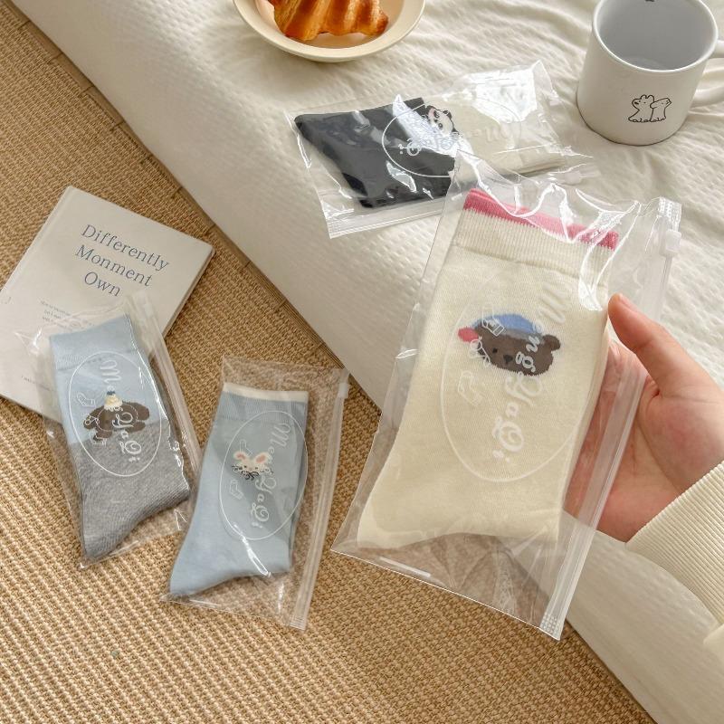 Pure Cotton Women's Autumn and Winter Gentle Color-blocking Cartoon Pile Socks, Cute Style, Versatile AB Style Mid-calf Socks
