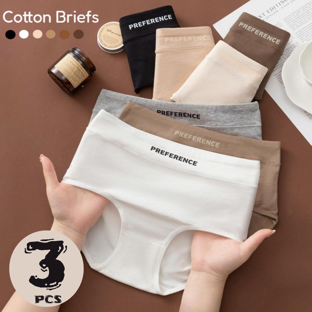 3 PCS Women's Cotton Briefs Maillard Colored Mid Waist Underpants Solid Color Comfortable Seamless Panties