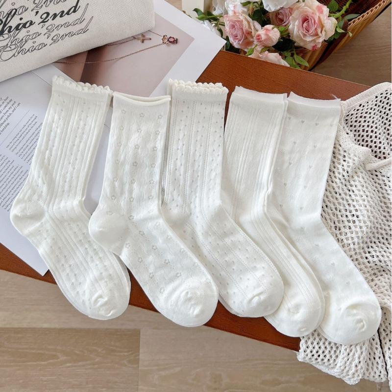 Ladies Summer Breathable Comfortable Dark Mesh Ballet Style Boneless White Medium Tube Stack Socks