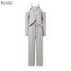 ZANZEA Two Piece Suit Women Cold Shoulder Long Sleeve Irregular Blouse and Pants Sets