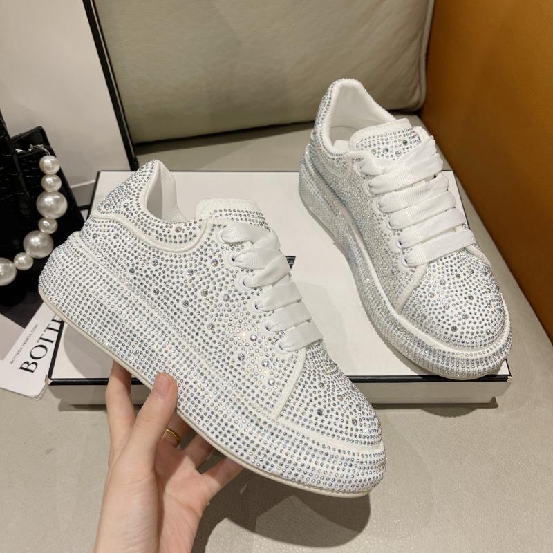 Fashion Women Platform Casual Sneakers Rhinestones Thick-soled White Silver Shoes for Women Shining Crystal Sneakers Trend Shoes