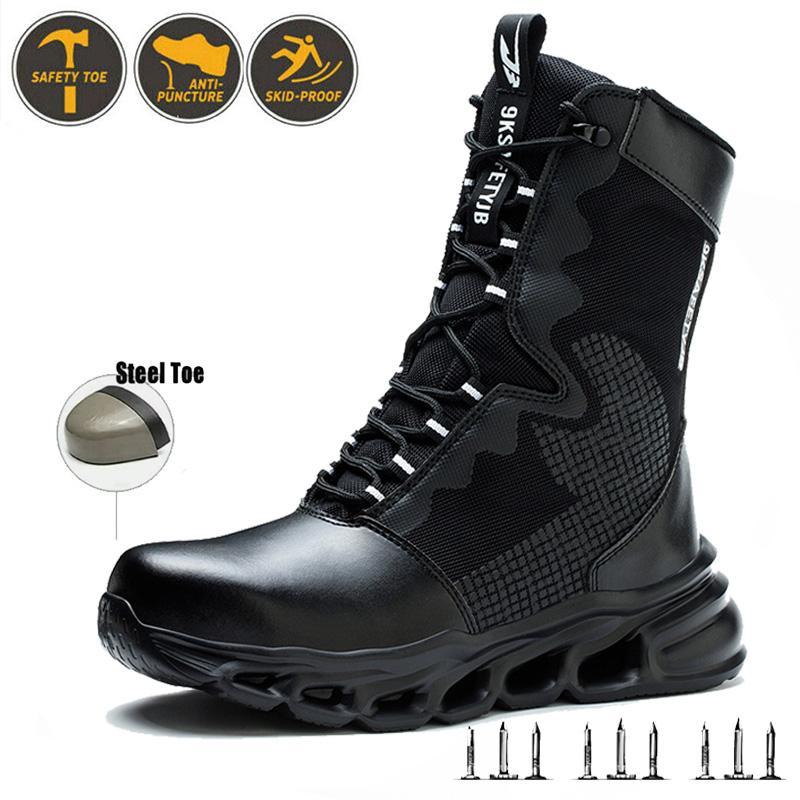 Mens Construction Work Shoes High Top Steel Toe Safety Boots Anti-Smash Wear-Resisting Design Suitable for Exploitation Site