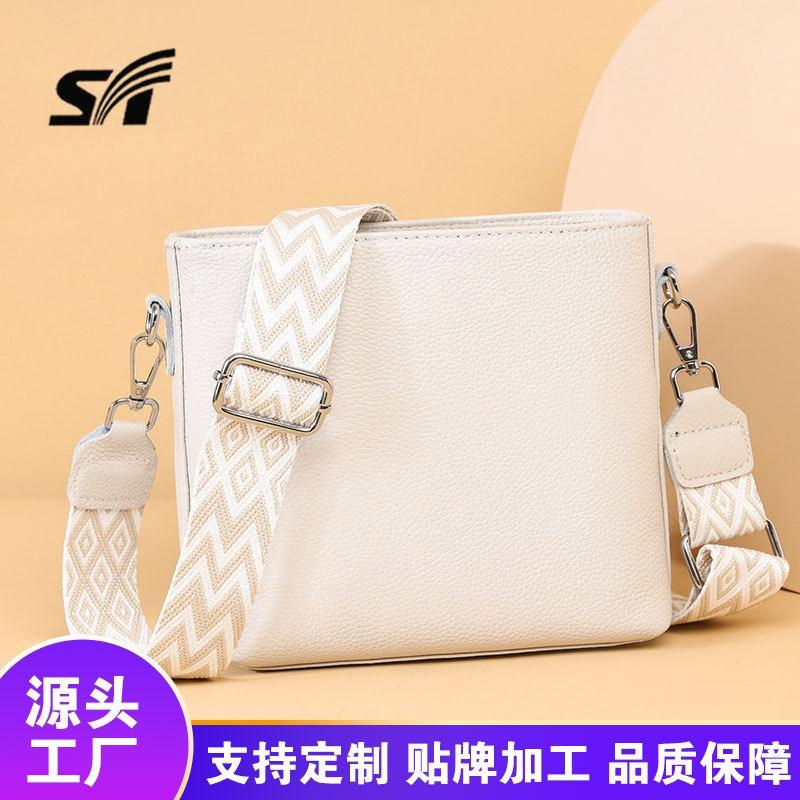 New Fashionable Versatile Messenger Bag Simple Soft Leather Shoulder Bag Large Capacity Bucket Bag Genuine Leather Women's Bag