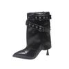 Belt Buckle Mid-leg Boots Autumn New Pointed Toe Sleeve Studded Metal Buckle Thin Folkel Boots