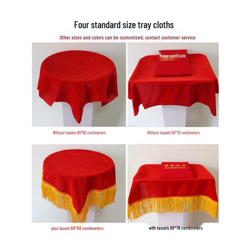 Dark Red Velvet Ceremony Tray - Small, Square, Thickened with Gold Trim for Awarding & Ribbon Cutting