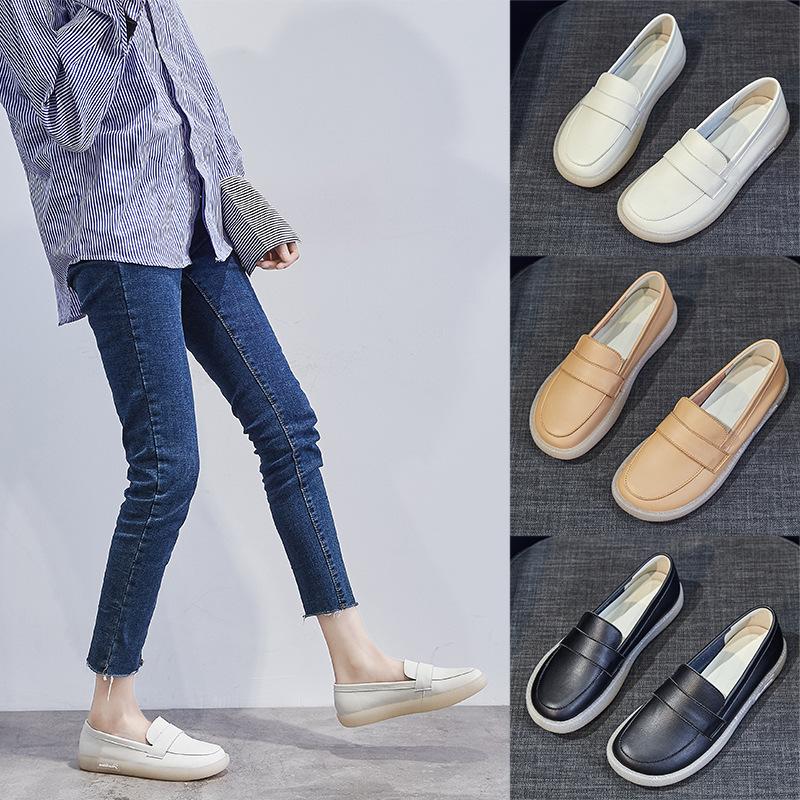 Soft-soled Single Shoes Women's Mori Women's Versatile Leather Little White Shoes British Lazy Doudou Shoes Pregnant Women Flat-soled Shallow Mouth