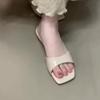 Sheepskin Version~ Simple Square Head Low-heeled Open-toed One-word Slippers for Women's Outer Wear 2025 Summer New Versatile Cool Slippers