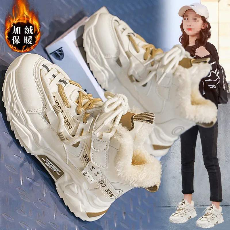 Girls Shoes Winter 2025 New Children's Non-slip Soft-soled Dad Shoes Trendy Older Children's Sports Shoes Velvet Cotton Shoes