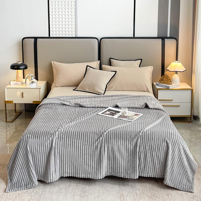Gray Striped Autumn Throw Blanket Soft Solid Color Winter Bedroom Warm Bed Blanket Home Hotel Travel Portable Blankets Full Size