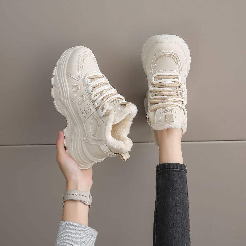 Fleece and Thickened Large Cotton Shoes for Women's 2025 Winter Putian Dad Shoes Large Size 41 To 43 Student Sports Little White Shoes