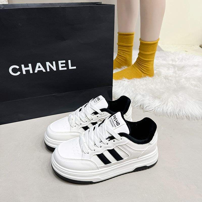 2025 New Little White Shoes Autumn and Winter Korean Version Thick-soled Versatile Sports Muffin Velvet Casual Student Board Shoes