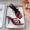 2025 Summer New Fairy Rhinestone High-heeled Sandals Female Thin Heel Square Head Internet Celebrity Word with Cool Slippers Female