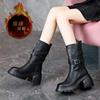 Korean Version of Thick-soled Heightening Small Girls Autumn and Winter Velvet Martin Boots 2025 New Belt Buckle Medium Tube Knight Boots