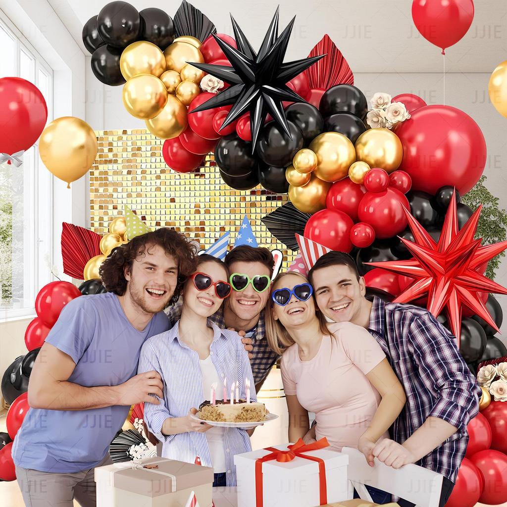 Elegant Red, Black & Gold Balloon Chain Set for Celebrations: Birthday, Graduation, Wedding
