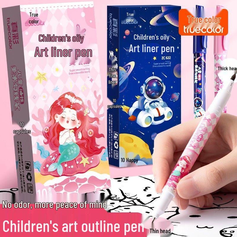 True Color Double-Headed Black Fineliner for Kids: Thick & Thin Tips for Art Outlining