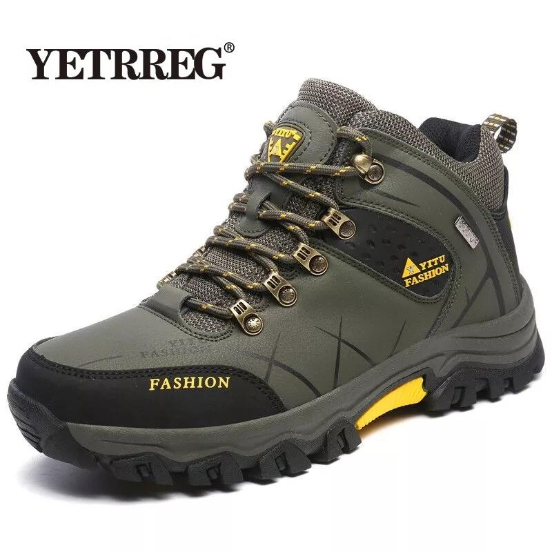 Brand Men's Winter Snow Boots Plush Warm Ankle Boots Waterproof Leather Sneakers Outdoor Male Hiking Boots Work Shoes Size 39-47