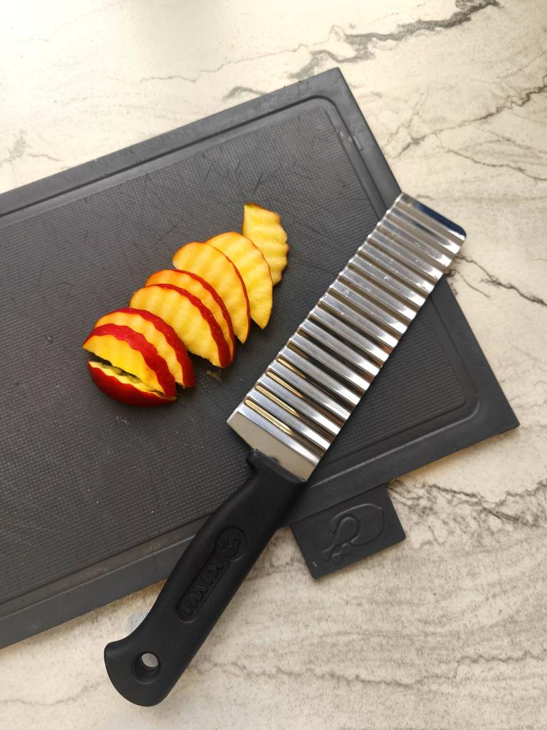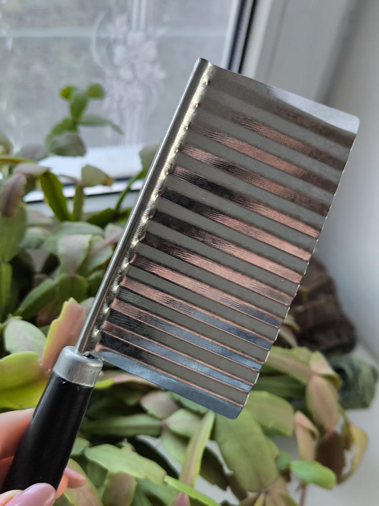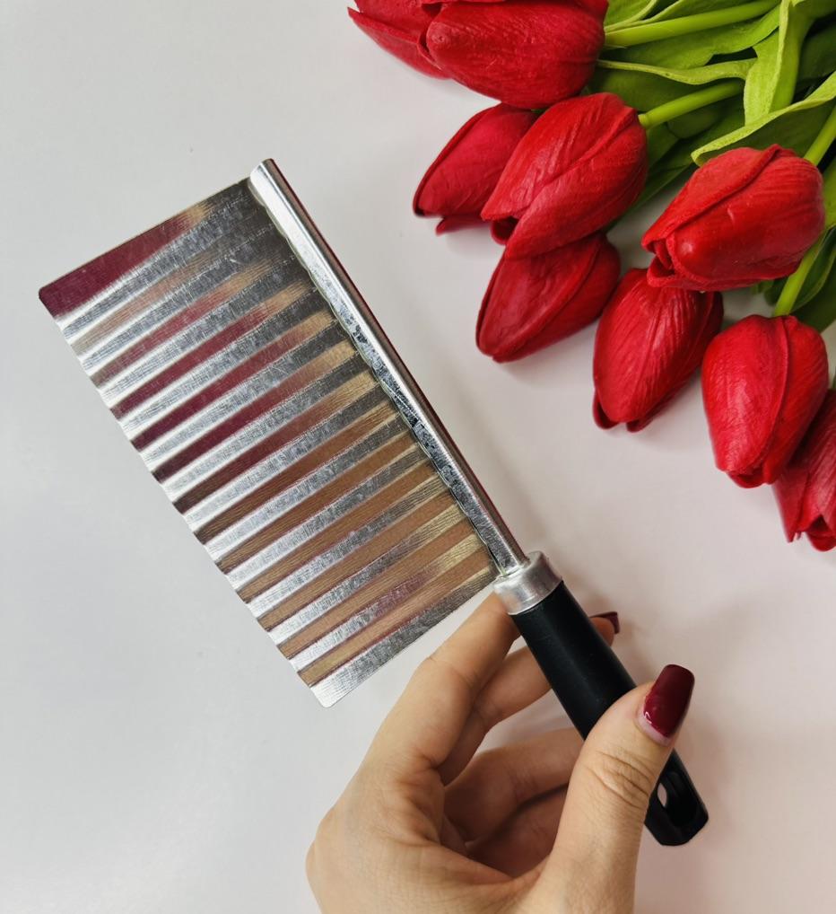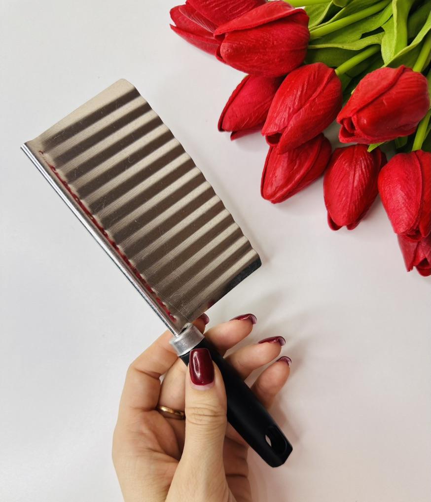 The stainless steel wavy potato cutter is an especially useful kitchen tool for those who like to serve dishes in a creative and impressive way. The serrated blade allows for a perfect wavy cut of potatoes, vegetables, and fruits – an aesthetic result suitable for homemade fries, salads, and dish garnishes. What I really liked was the quality of the stainless steel – the blade is sharp, rust-resistant, and maintains its performance over time. The handle is comfortable to grip and allows for good control during cutting, making kitchen work easier and faster.. This is a simple but smart tool that adds a professional touch to any dish and enhances the cooking and serving experience. A great solution for the home or professional kitchen.