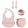 Color Kids 5PCS Food Grade Silicone Feeding Set Sucker Dishes Plate Self Feeding Bowl Sippy Cup BPA Free Toddler Meal Essentials