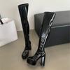 Winter Fashion Round Toe Over Knee Boots Women Chunky Platform Heels Zipper Motorcycle Botas Largas Mujer