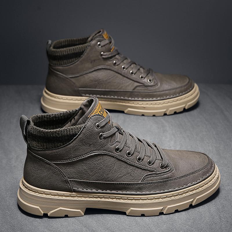 Men's Boots Fashion High Top Casual Sneaker High Quality Leather Ankle Boots for Men Lace Up Platform Work Boot Botas Masculinas