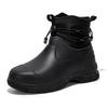 Men's Rain Shoes Leather Top Thick Sole High Top Anti Slip Water Shoes Outdoor Mountaineering Plush Warm Boots Work Safety Boots