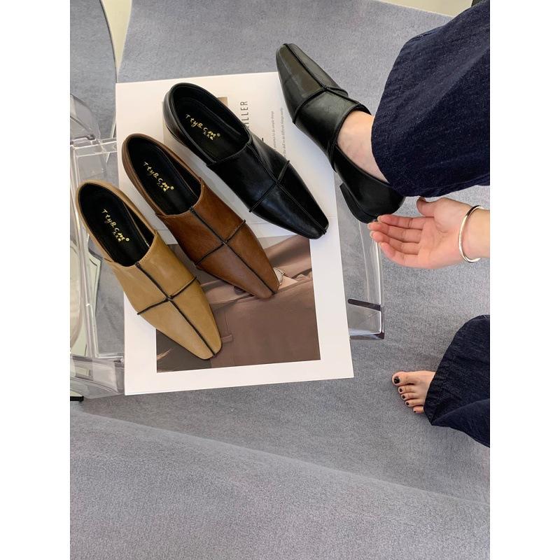 Niche Versatile One-pedal Deep-mouth Small Leather Shoes Women's 2025 New Retro Style Square Head Simple Thick Heel Soft Leather Shoes