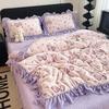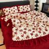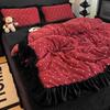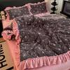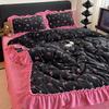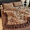 Premium Leopard Print Thickened Milk Fleece Rabbit Plush Lace Bed Cover Four-Piece Warm Double-Sided Fleece Bed Hat
