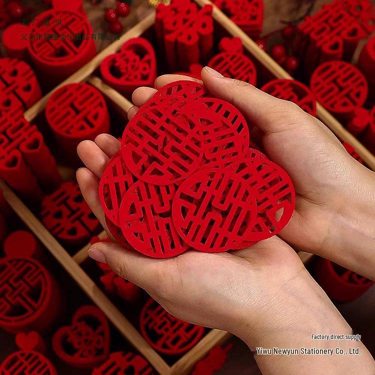 Set of Small Double Happiness Stickers for Wedding Decorations, Stairs, and Room Arrangement with Handkerchief Flowers