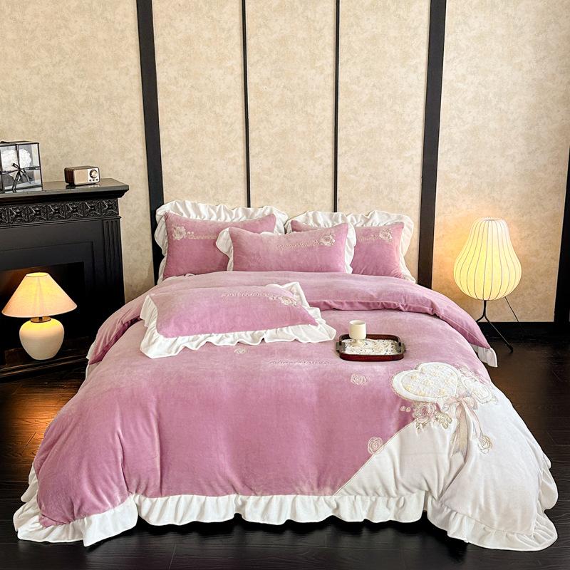 Thickened Milk Fleece Four-Piece Coral Fleece Double-Sided Fleece Bed Quilt Cover Flannel Bedding