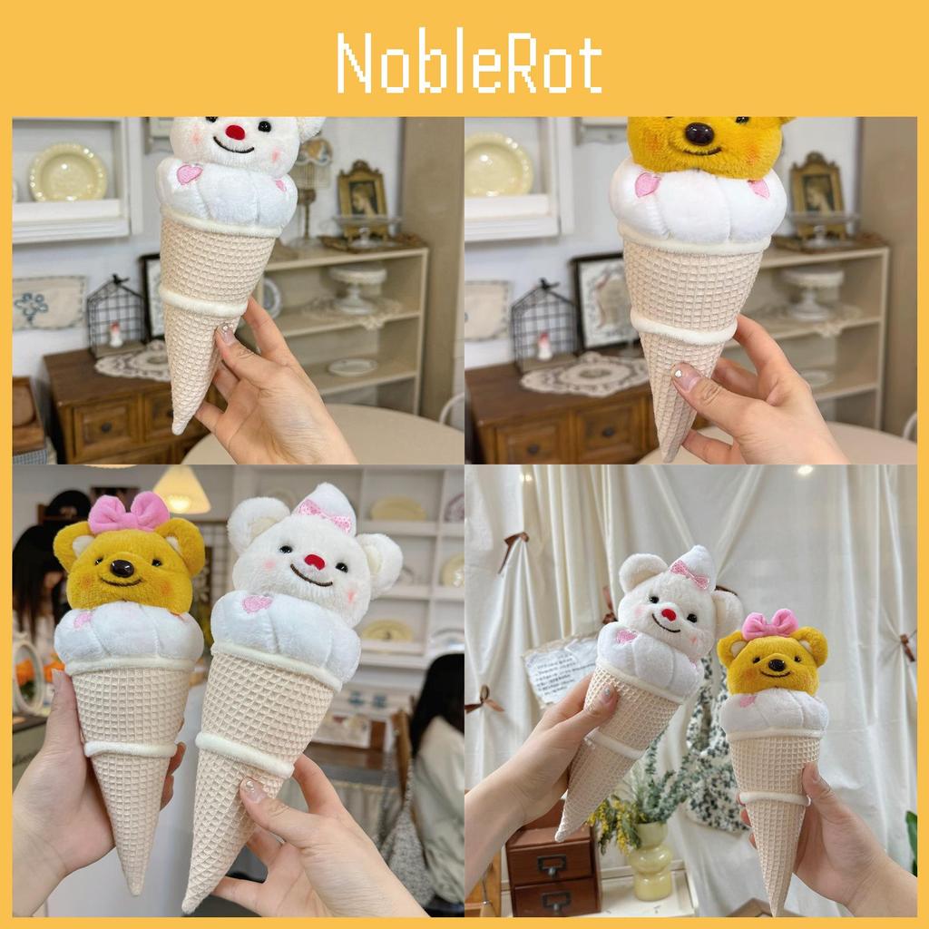 The Cute Butter Bear Ice Cream Plush Toy is a charming addition to any childs collection, combining playful design with soft, huggable comfort. This plush toy features a delightful ice cream cone design with a bear-shaped topper, crafted from premium short plush fabric and filled with soft PP cotton for a lightweight yet durable feel. Measuring 27cm in height, it is perfectly sized for little hands to carry and cuddle. The toy is available in two cheerful color options: white bear ice cream and yellow bear ice cream, making it a versatile choice for gifting or personal use.