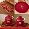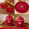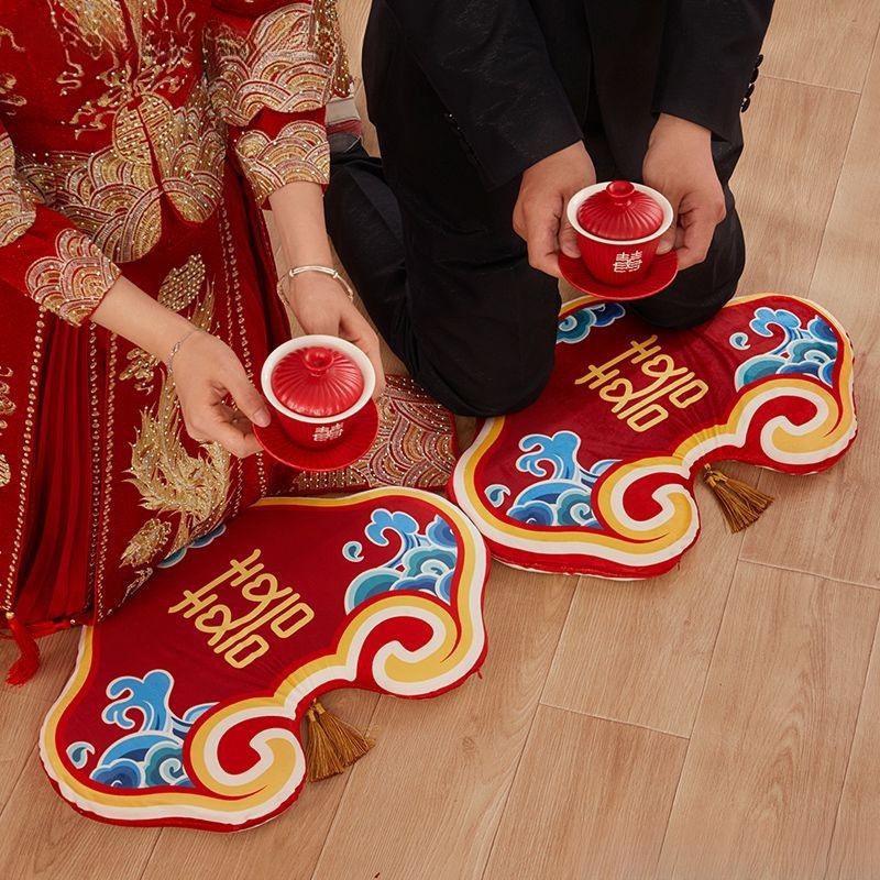 Red Wedding Kneeling Cushions for Tea Ceremony and Bride's Address Change - Complete Cotton Set.