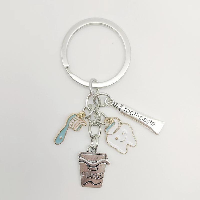 European and American Style Dental Care Keychain with Toothbrush, Toothpaste, and Floss - Creative Backpack Pendant Gift