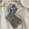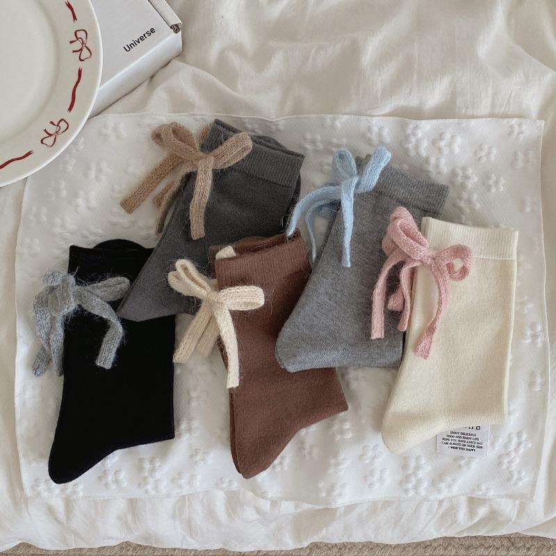 Boneless, Warm, Soft and Fluffy Rabbit Fleece Solid Color Socks for Autumn and Winter. Sweet and Contrasting Color Mid-calf with A Bow At The Back