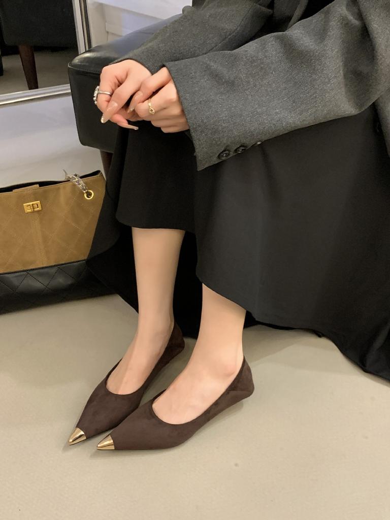 French Pointed Metal Head High Heels Women's 2025 New Suede Thick Heels, Thin Temperament Single Shoes