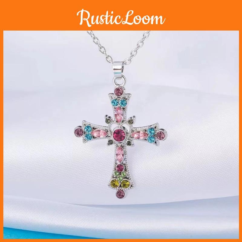 Available in two stunning color variants, this necklace caters to diverse tastes and preferences. Each option embodies the essence of bohemian chic, making it an ideal gift for yourself or a loved one. Whether youre dressing up for a special occasion or adding flair to your everyday wear, this colorful crystal cross pendant necklace is the perfect finishing touch.
