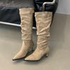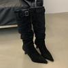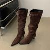 Mi Ting European and American Style Pointed Head Thin Boots Autumn and Winter Leopard Print Sexy Thin High Heel Niche Long Boots But Knee Fashion Sin