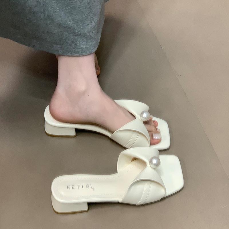 Bow Women's Slippers Women's Summer Wear New French Temperament Fairy Style Evening with Skirt Thick Heel Sandals