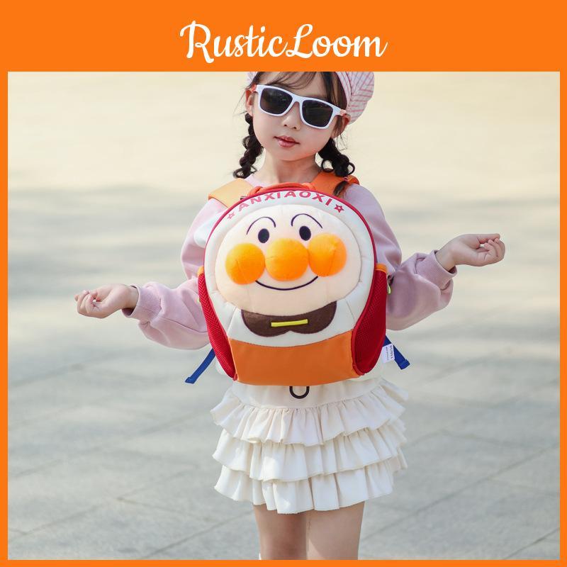 Plush Anpanman Kids Backpack With Cute Cartoon Print Schoolbag Lightweight Gift