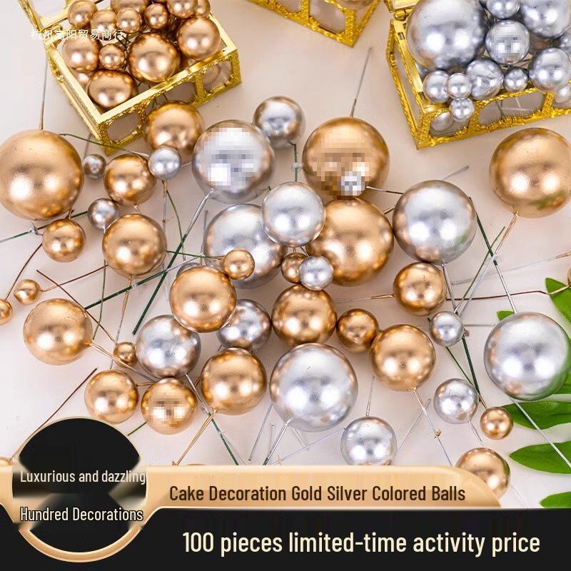 100pcs Cake Toppers: Gold, Silver, and Colorful Balls for Birthday Party Decorations