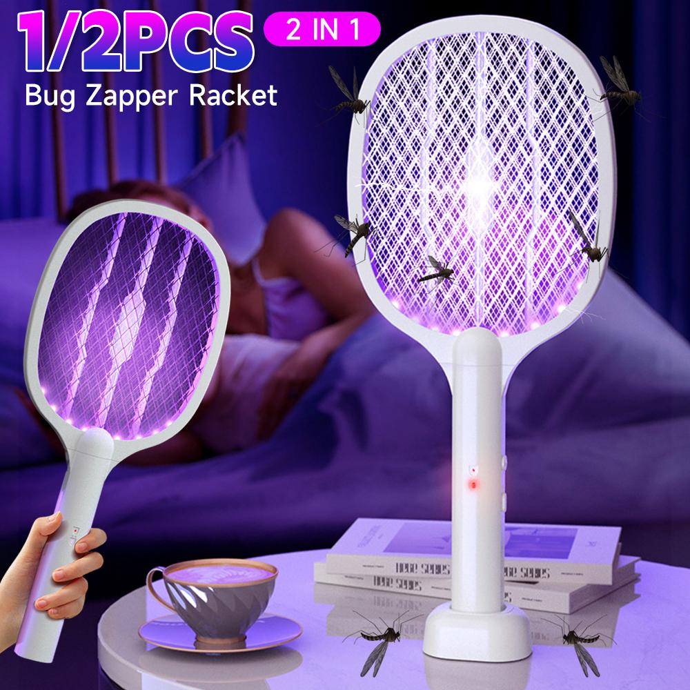 1/2PCS 2 In 1 Electric Mosquito Swatter Mosquito Killer Lamp 3000V Fly Swatter Repellent Lamp Zapper Insects Racket for Home B