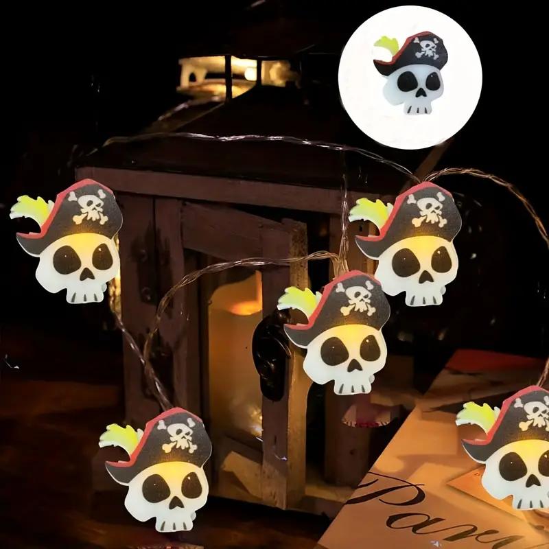 1pc Halloween Pirate Skull String Light 10/20LED Hanging Atmosphere Lamp For Home Haunted Houses Indoor Festival Party Decor