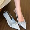 Fashion New Stylefamous Brand Plus Size Bow Pointed Bag Solid Color Vacant One-Row Thin High Heels Sandals
