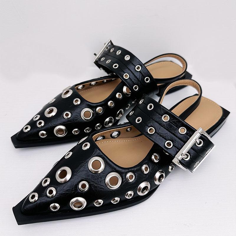 Fashion Big Size 2025 Luxury Women Flats Sandals Shoes Female Casual Buckle Strap Fashion Pointed Toe Ladies Sandals Shoes Slingback