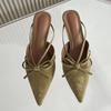 Fashion Female Pointed Toe Footwear New 2025 Pumps Women Low Heel Shoes Mules Fashion Butterfly-Knot Shallow Ladies Heel Shoes Slides