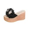 Fashion Women Mule Clogs 90mm Heels Wedge Sandals Female Flower Appliquere Platform Slide Slippers