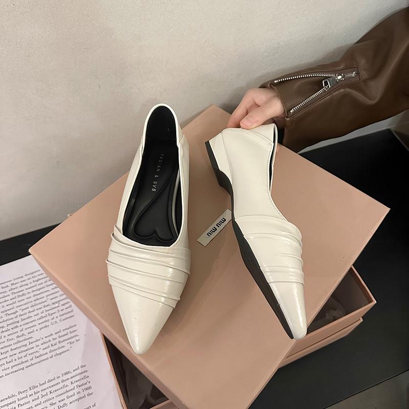 Fashion Spring New Single Shoes Women Fashion Pointed Head Shallow Mouth Fold Soft Sole Anti-slip Wear-resistant Low Heel Shoes